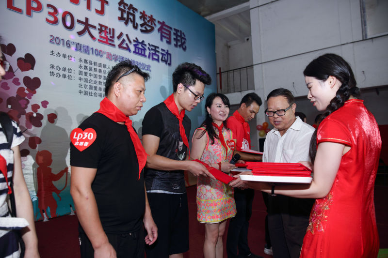 8月14日上午,由永嘉县慈善总会、鹤盛镇人民政府联合主办,“圆爱·中国梦”温州LP30志愿者承办,中国企业教练联合会、北京圆爱单亲家庭服务中心、中国社会福利基金会圆爱基金协办的“与爱同行·筑梦有我”温州LP30大型公益活动暨2016“真情100”助学结对仪式,在我县鹤盛镇东皋村文化礼堂举行。